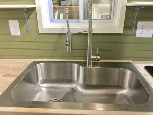 • Butcher block countertops with large sink